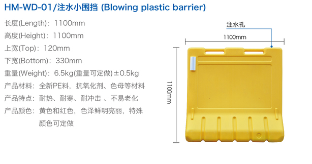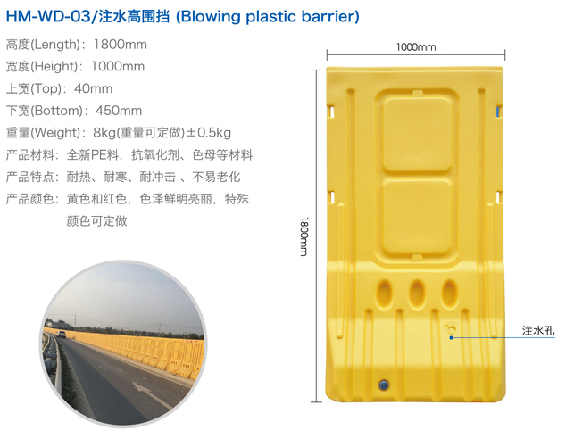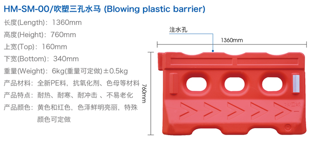 特點(diǎn):1、完全:用塑料PE制造,盛水后更具緩沖彈性,能吸收強(qiáng)大的沖力,有效地減少對汽車、路人、及欄內(nèi)工作人員的傷害。顏色鮮明,可根據(jù)道路要求選擇不同顏色,清楚明確地指示行車路線。串聯(lián)使用,整體承受力更強(qiáng)。